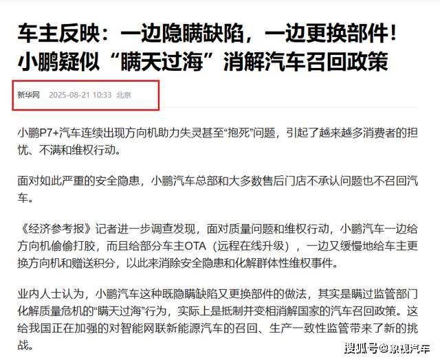 9月12日,国家市场监管总局至尊国际官网公布的一则召回公告,将新势力头部车企小鹏汽车,推向了风口浪尖。